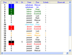 de pontaj electronic. Programul comunica direct cu un echipament Entrax de pontare electronică şi afla detalii referitoare la momentele de intrare-ieşire ale angajaţilor. Pe baza acestor citiri se putea determina: Starea unui angajat poate fi identificată ca: Aplicaţia este de tip client-server. Serverul rulează pe o staţie, iar clienţii se pot conecta din reţea. De asemenea, modulul care comunică direct cu terminalul Entrax este instalat pe o staţie separată a reţelei şi comunică direct cu serverul. Conţine o listă a activităţilor zilnice ale fiecărui angajat. Pentru fiecare zi a lunii se afişează: Graficul stărilor descrie pentru perioada aleasă totalul zilelor pentru fiecare stare în parte. Pontajul lunar pune sub forma unui tabel activitatea angajaţilor unei secţii pe durata unei luni.