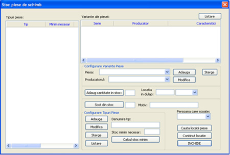 Modulul stoc Înregistrează toate piesele care se găsesc pe maşini cu: